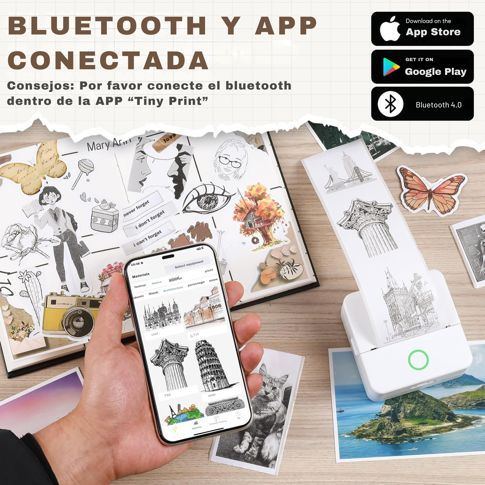 Gracias a la APP complementaria "Tiny Print" podrás imprimir tanto imágenes como textos de forma rápida y sencilla